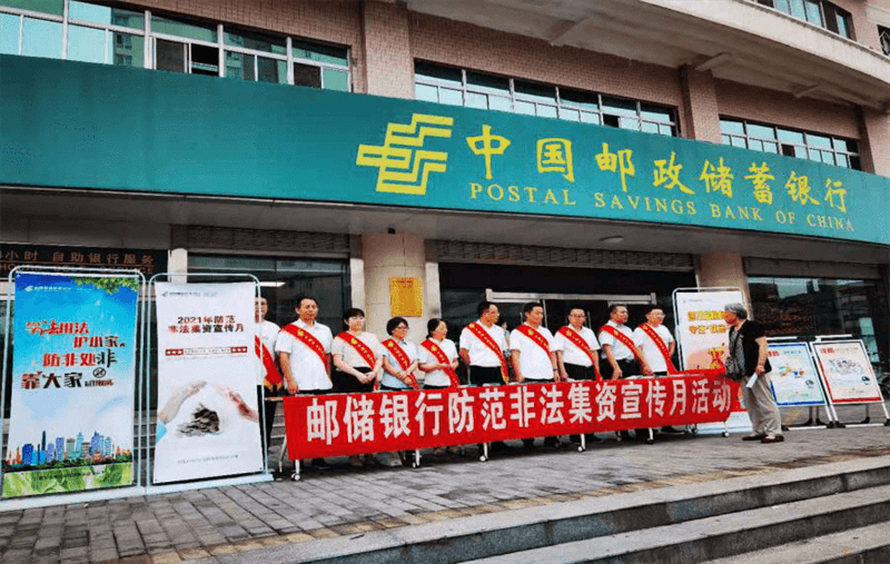 2021年6月15日,邮储银行咸阳市分行在全市范围内扎实开展防范非法集资集中宣传活动,认真贯彻落实防范和处置非法集资条例有关要求,充分发挥金融机构责任担当,增强人民群众非法集资防范意识,提升公众识别风险能力,营造良好的社会金融环境。