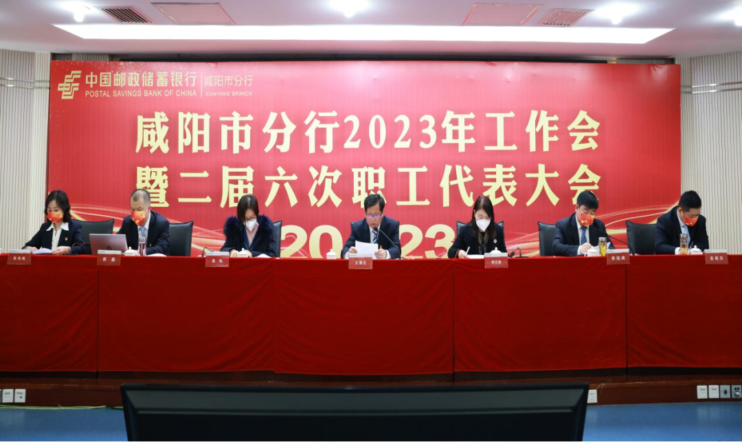 1月18日,邮储银行咸阳市分行组织召开了2023年工作会议暨第二届职工代表大会第六次会议,全面贯彻落实党的二十大精神及中央经济工作会议精神,扎实推进集团公司、总行、省分行工作会议要求,总结2022年工作,分析形势与机遇,部署2023年重点任务。咸阳市分行领导班子,机关各部门正副职,各一级支行领导班子、二级支行长、各团队主管、职代会代表通过现场和电视电话的方式参加了会议。会议特邀中国人民银行咸阳中心支行李文侠副行长、咸阳银保监分局大型银行科苗锐科长莅临指导。
